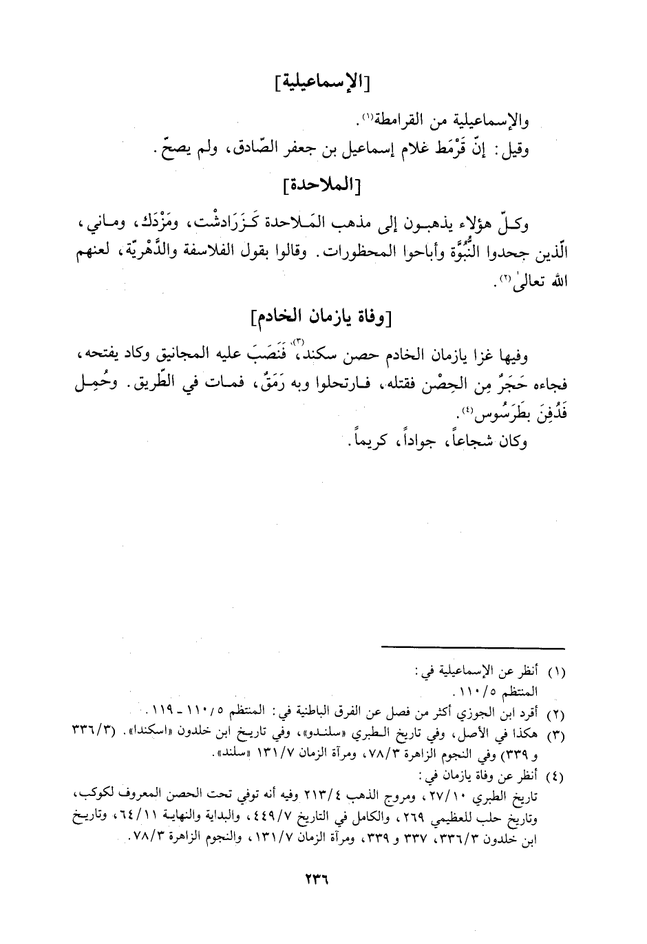 وكل هَؤُلَاء يذهبون إِلَى مذهب الملاحدة كزرادشت، ومزدك، وماني، الّذين جحدوا النبوة وأباحوا المحظورات. وقَالَوا بقول الفلاسفة والدهرية، لعنهم الله تعالى [2] .