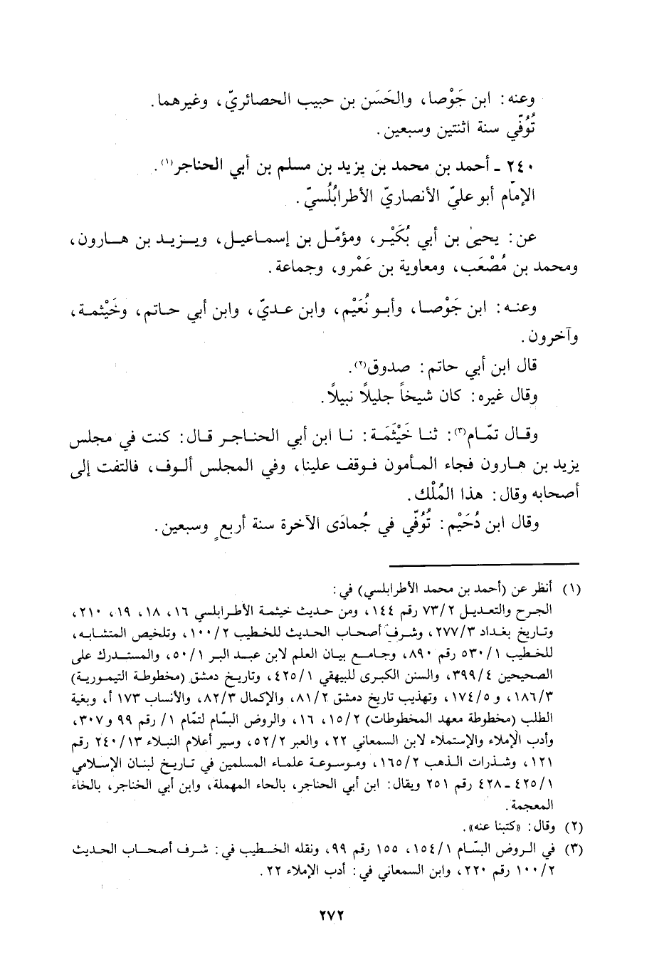 240- أَحْمَد بْن محمد بن يزيد بن مُسْلِم بْن أبي الحناجر [1] .