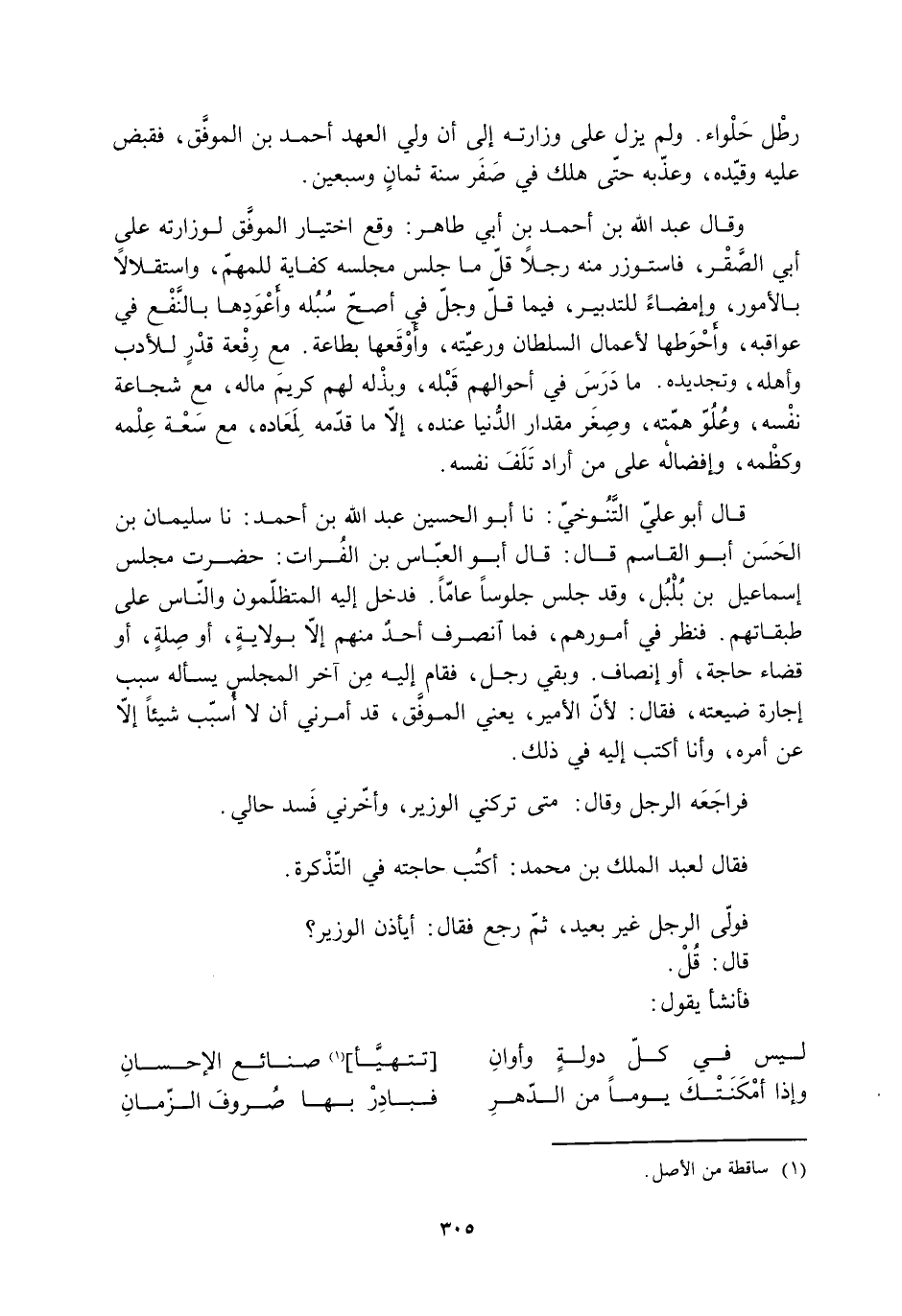 فراجعه الرجل وقَالَ: مَتَى تركني الوزير، وأخّرني فَسد حالي.