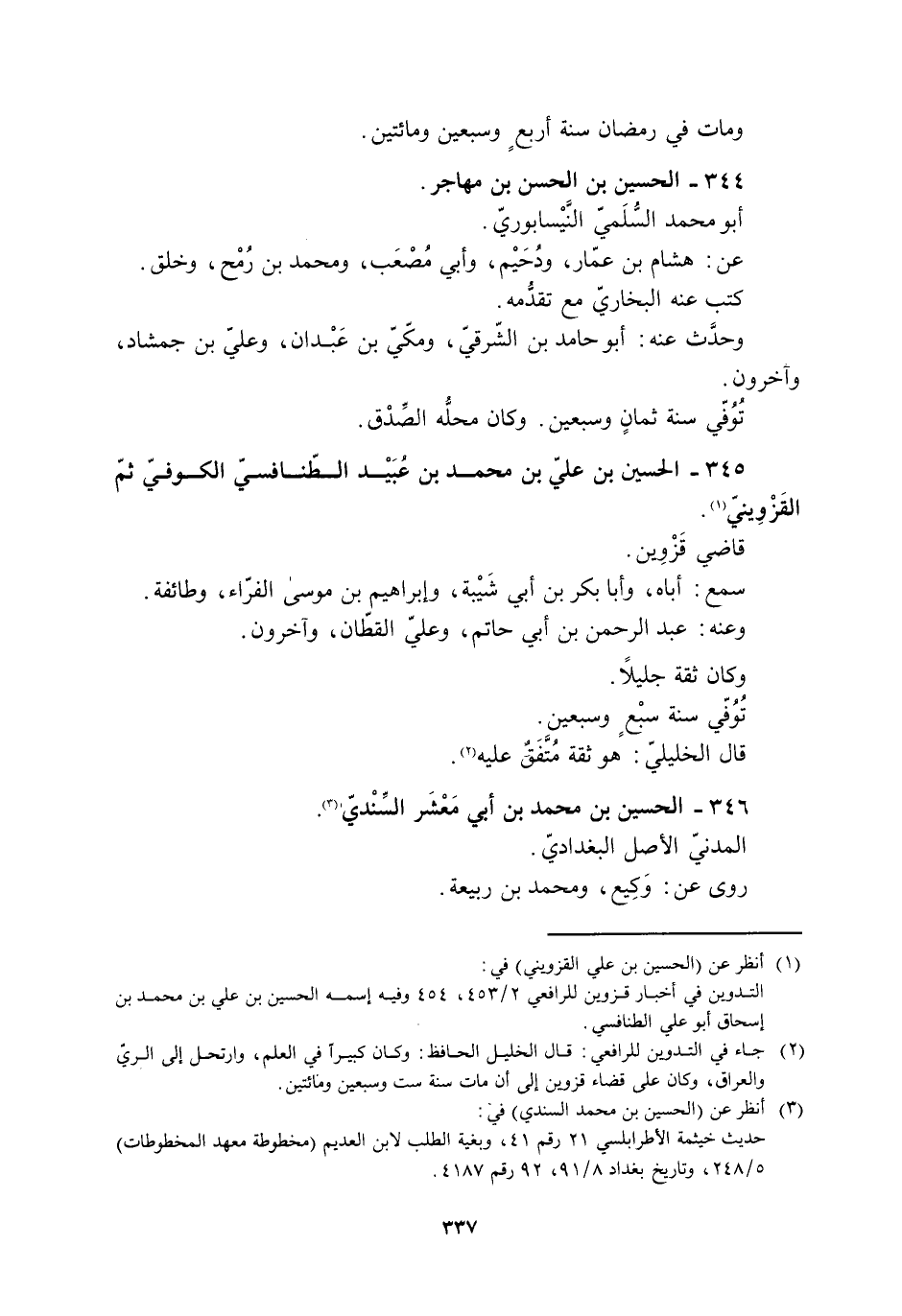 345- الْحُسَيْن بْن عليّ بْن محمد بْن عُبَيْد الطّنافسيّ الكوفيّ ثُمَّ القَزْوِينيّ [1] .