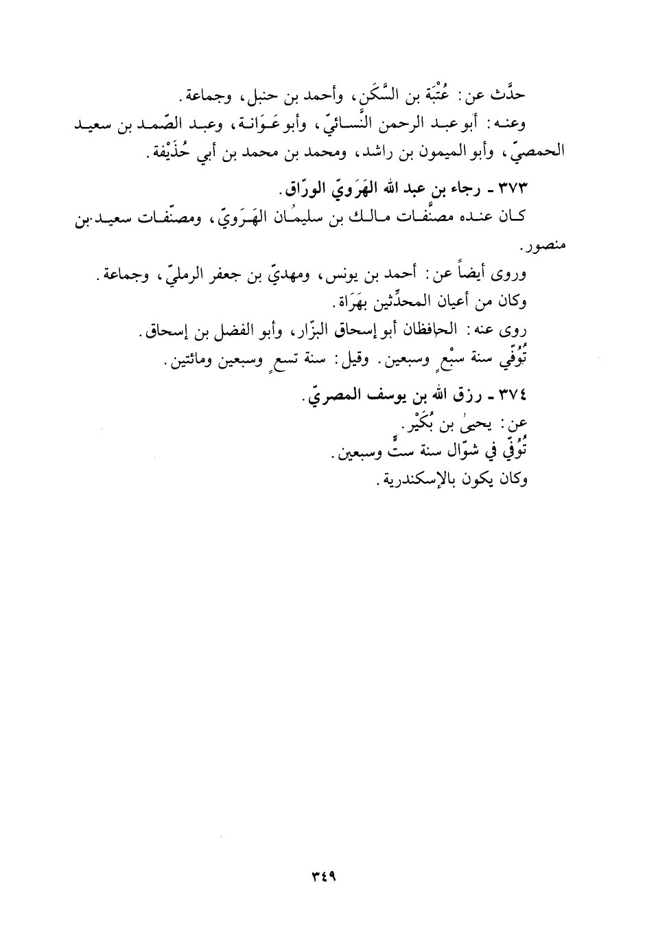 373- رجاء بْن عَبْد الله الهَرَويّ الورّاق.