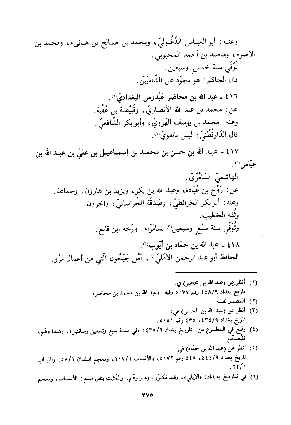 416- عَبْد الله بْن محاضر عبدوس الْبَغْدَادِيّ [1] .