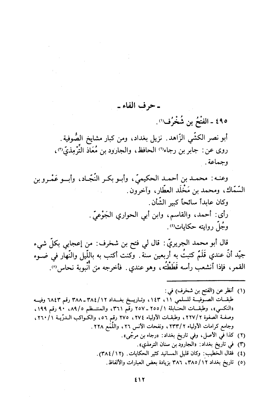 [5] تاريخ بغداد 12/ 385، 386 بزيادة بعض العبارات والألفاظ.