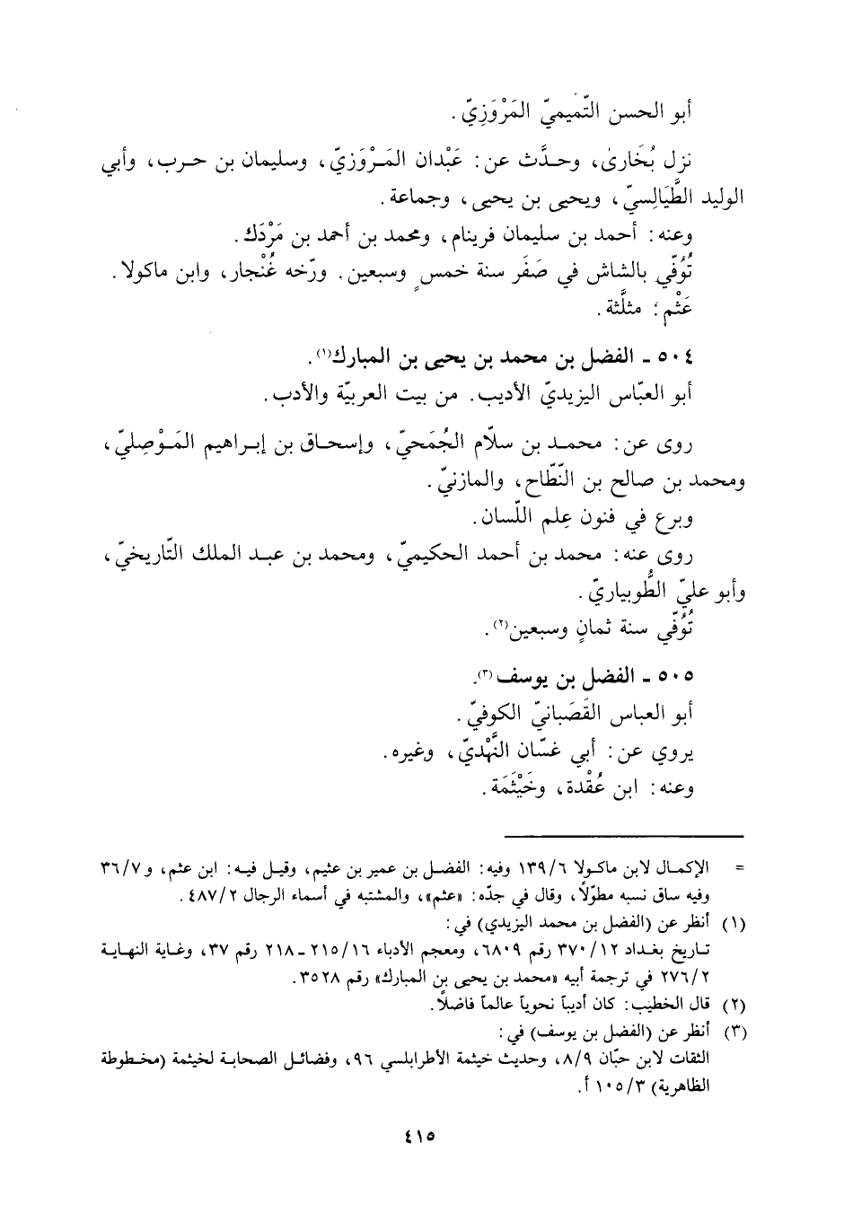 [1] انظر عن (الفضل بن محمد اليزيدي) في: