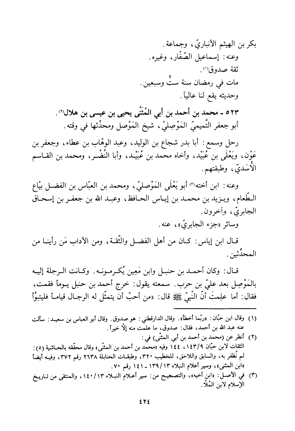 523- محمد بْن أحْمَد بْن أبي المُثَنَّى يحيى بْن عِيسَى بْن هلال [2] .