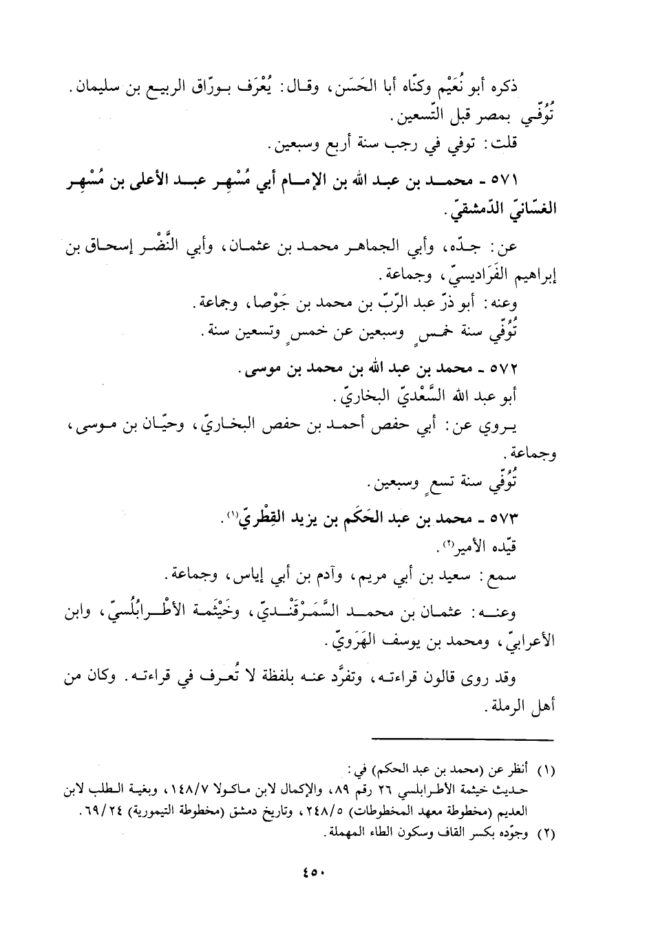 571- محمد بْن عَبْد الله بْن الْإِمَام أبي مُسْهِر عَبْد الأعلى بْن مُسْهِر الغسّانيّ الدّمشقيّ.