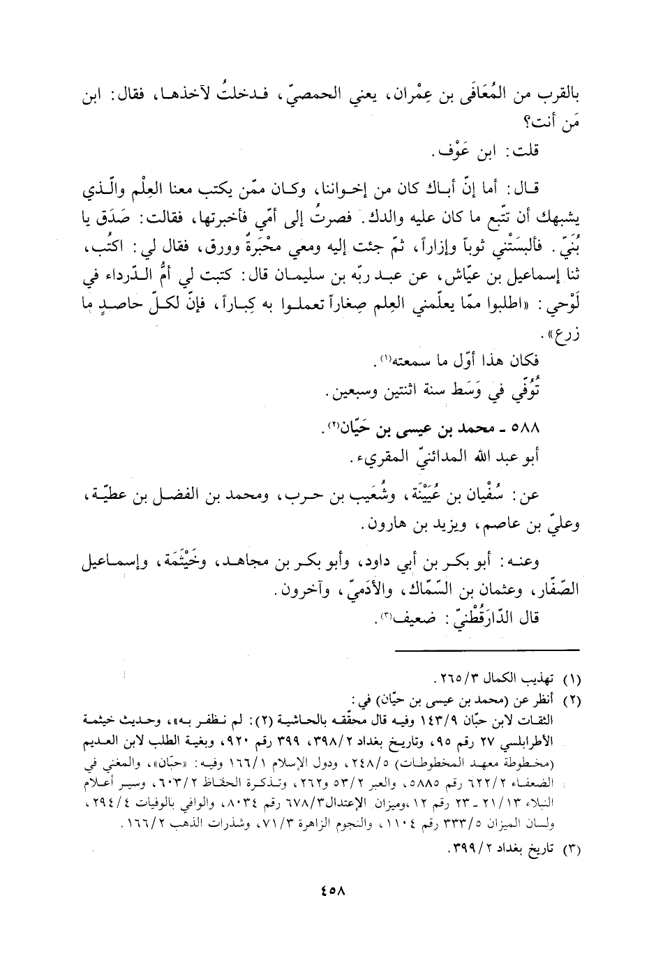 [2] انظر عن (محمد بن عيسى بن حيّان) في: