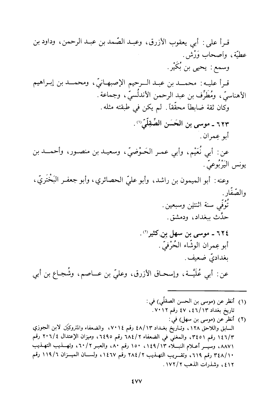 تاريخ بغداد 13/ 46، 47 رقم 7012.