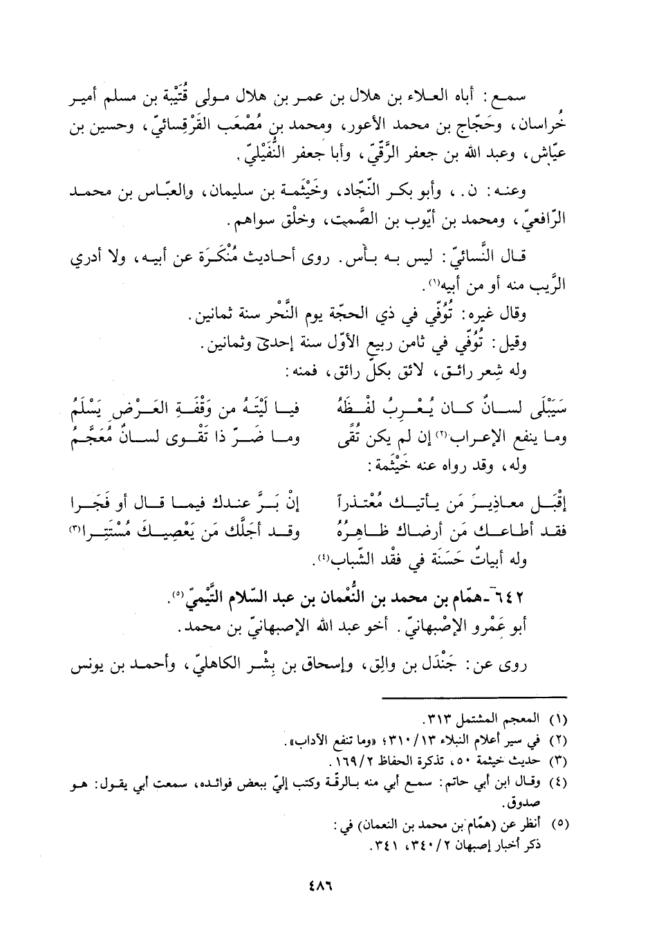 642- همّام بْن محمد بْن النُّعمان بْن عَبْد السّلام التَّيْميّ [5] .