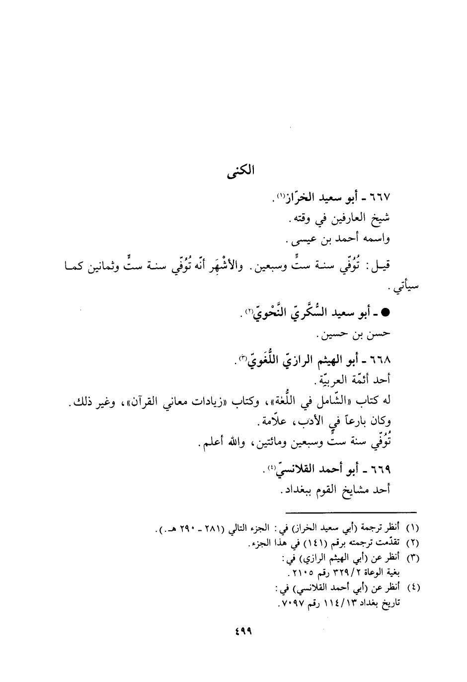 [1] انظر ترجمة (أبي سعيد الخراز) في: الجزء التالي (281- 290 هـ.) .