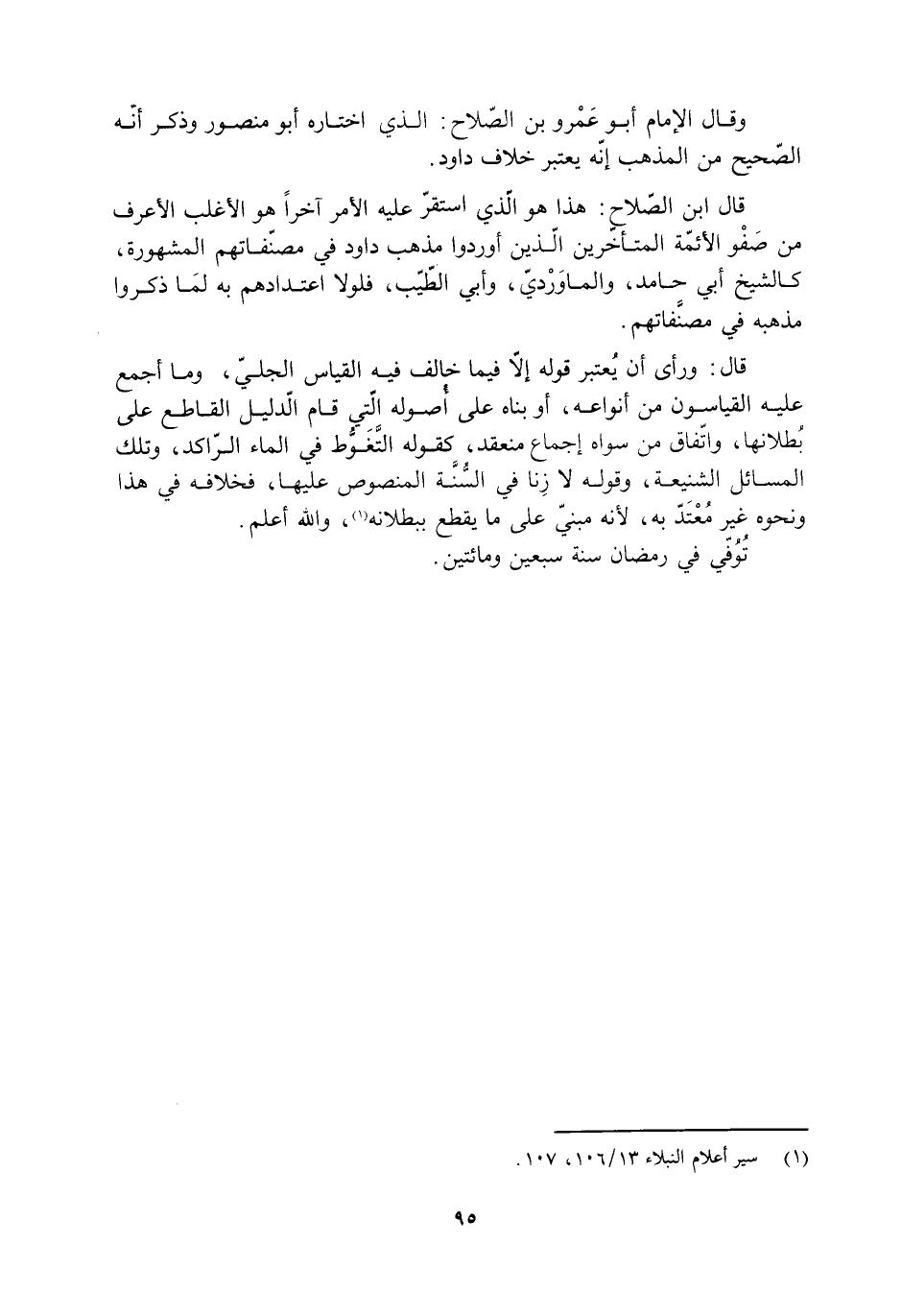 قَالَ ابنُ الصّلاح: هَذَا هُوَ الَّذِي استقرّ عليه الأمر آخرًا هُوَ الأغلب الأعرف من صَفْو الأئمّة المتأخرين الذين أوردوا مذهب دَاوُد فِي مصنّفاتهم المشهورة، كالشيخ أبي حامد، والماوَرْديّ، وأبي الطّيّب، فلولا اعتدادهم به لَمَا ذكروا مذهبه فِي مصنَّفاتهم.