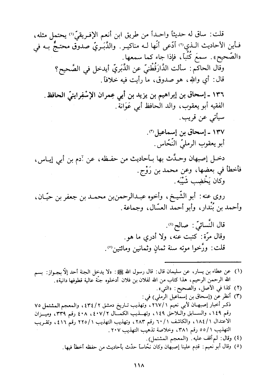 136- إِسْحَاق بن إبراهيم بن يزيد بن أبي عمران الإسفرايني الحَافِظ.