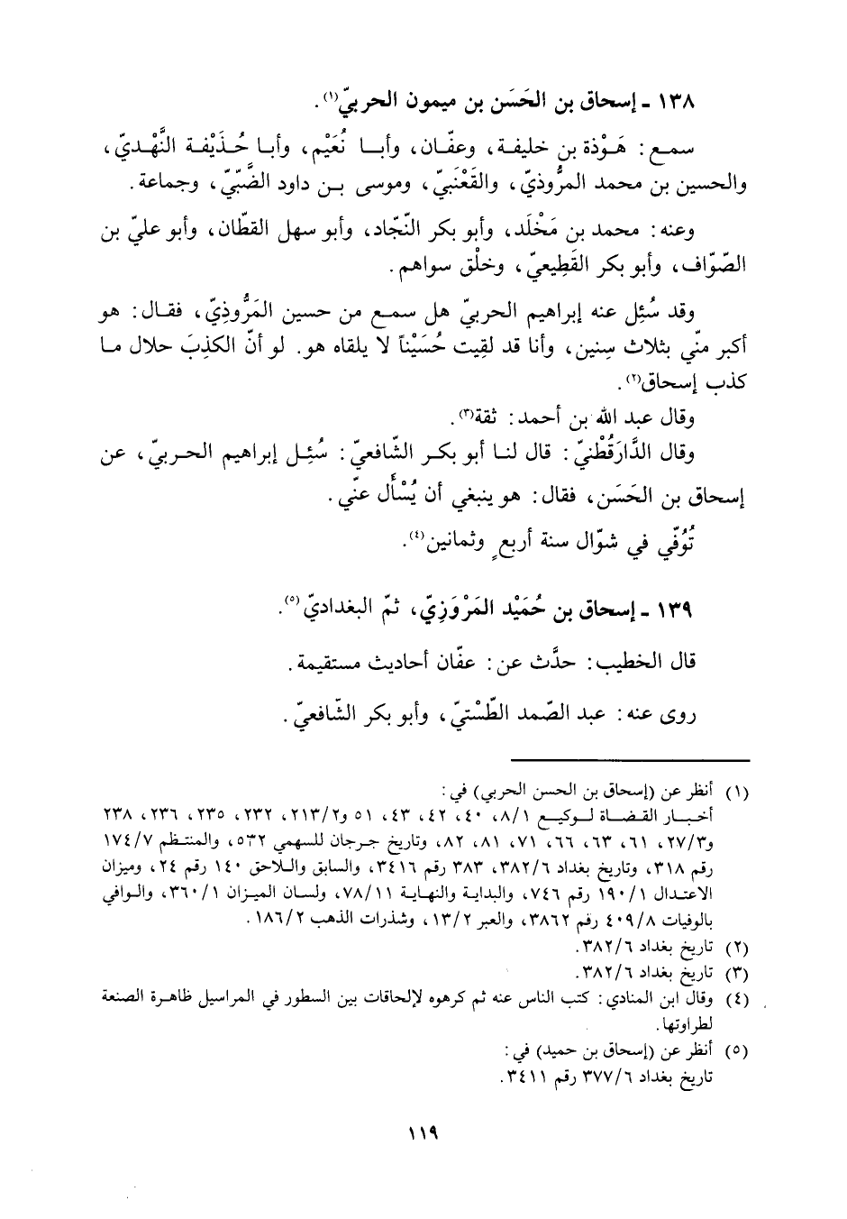 [1] انظر عن (إسحاق بن الحسن الحربي) في: