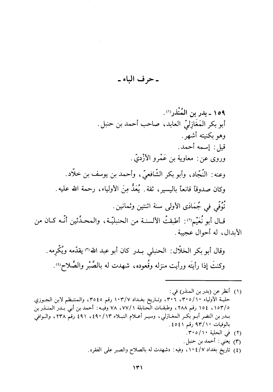 [4] تاريخ بغداد 7/ 104، وفيه: «شهدت له بالصلاح والصبر على الفقر» .