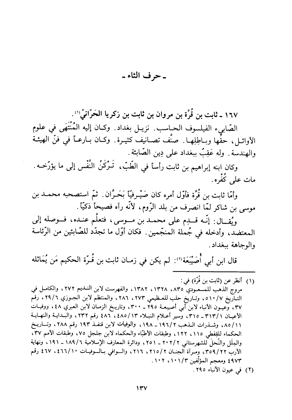167- ثابت بن قُرة بن مروان بن ثابت بن زكريا الحرّانيّ [1] .
