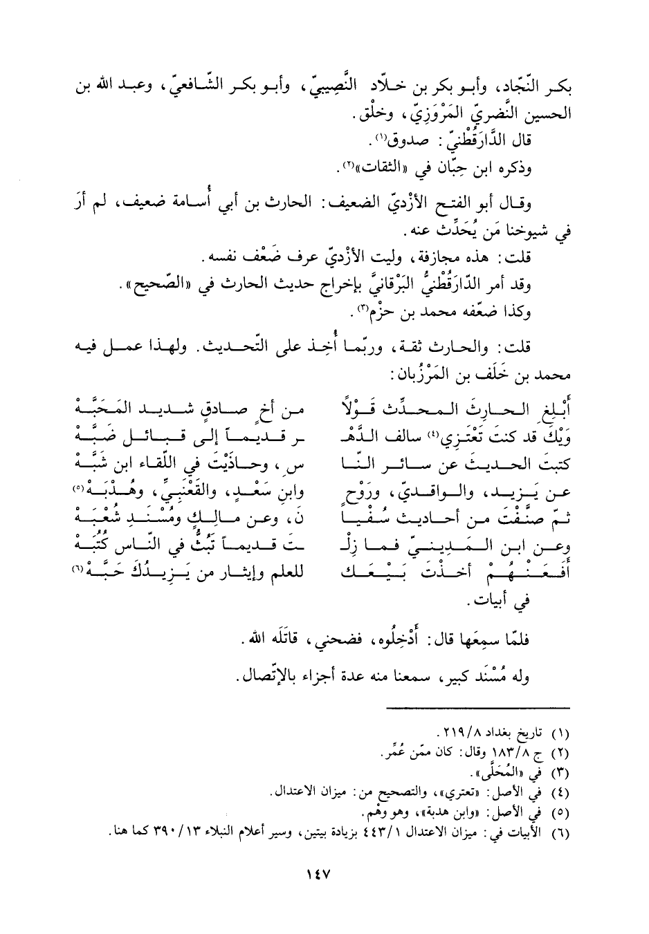 [6] الأبيات في: ميزان الاعتدال 1/ 443 بزيادة بيتين، وسير أعلام النبلاء 13/ 390 كما هنا.