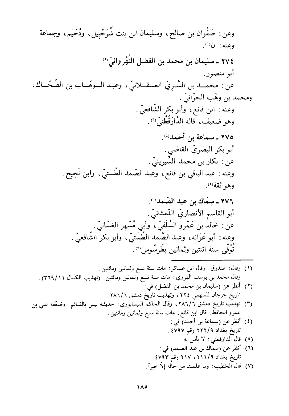 [3] تهذيب تاريخ دمشق 6/ 286، وقال الحاكم النيسابورىّ: حديثه ليس بالقائم. وضعّفه علي بن عمرو الحافظ. قال ابن قانع: مات سنة سبع وثمانين ومائتين.
