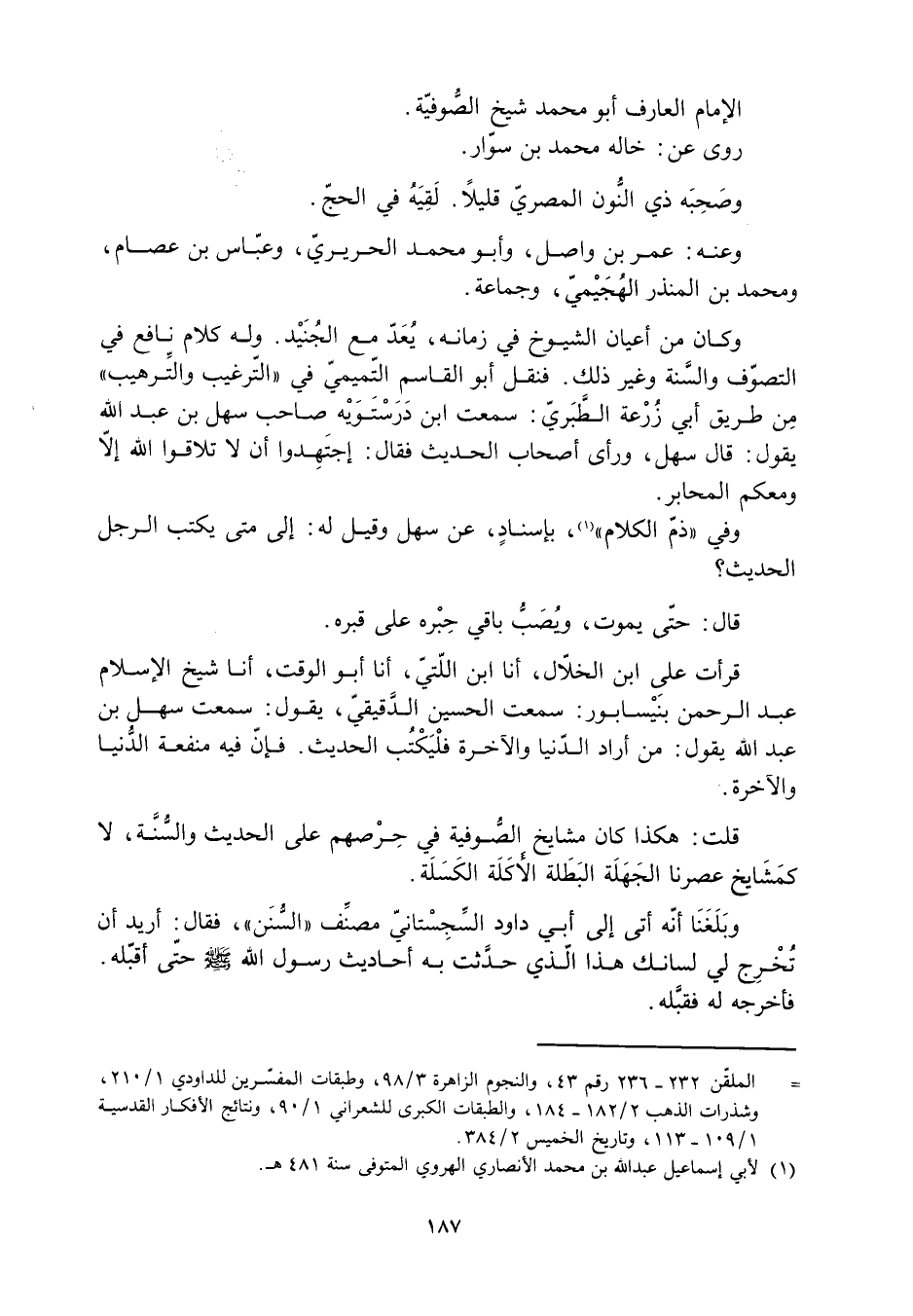 وفي «ذمّ الكلام» [1] ، بإسنادٍ، عن سهل وَقِيلَ لَهُ: إلى متى يكتب الرجل الحديث؟