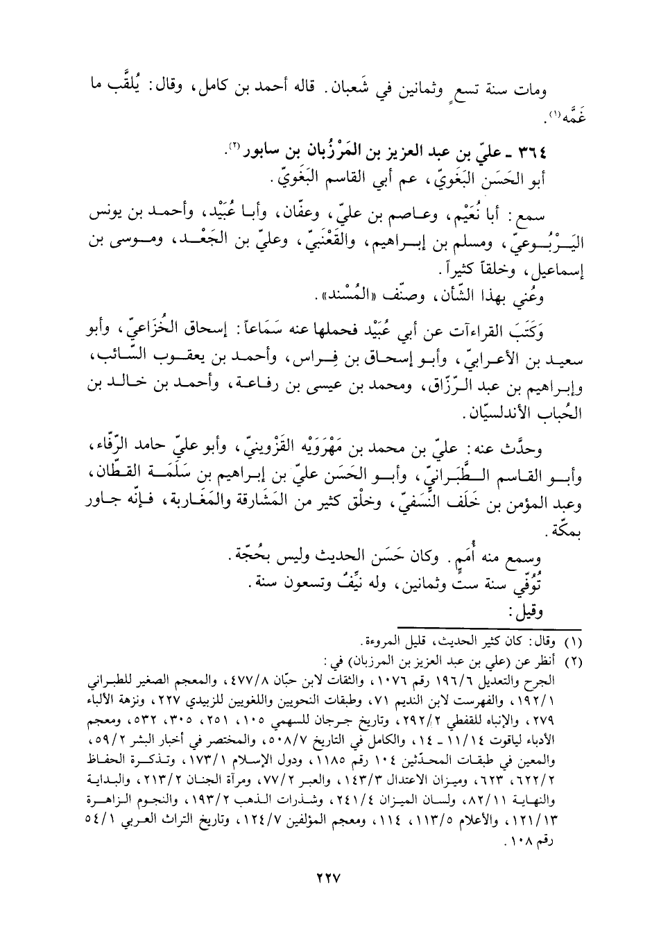 364- عَليّ بن عبد العزيز بن المَرْزُبان بن سابور [2] .