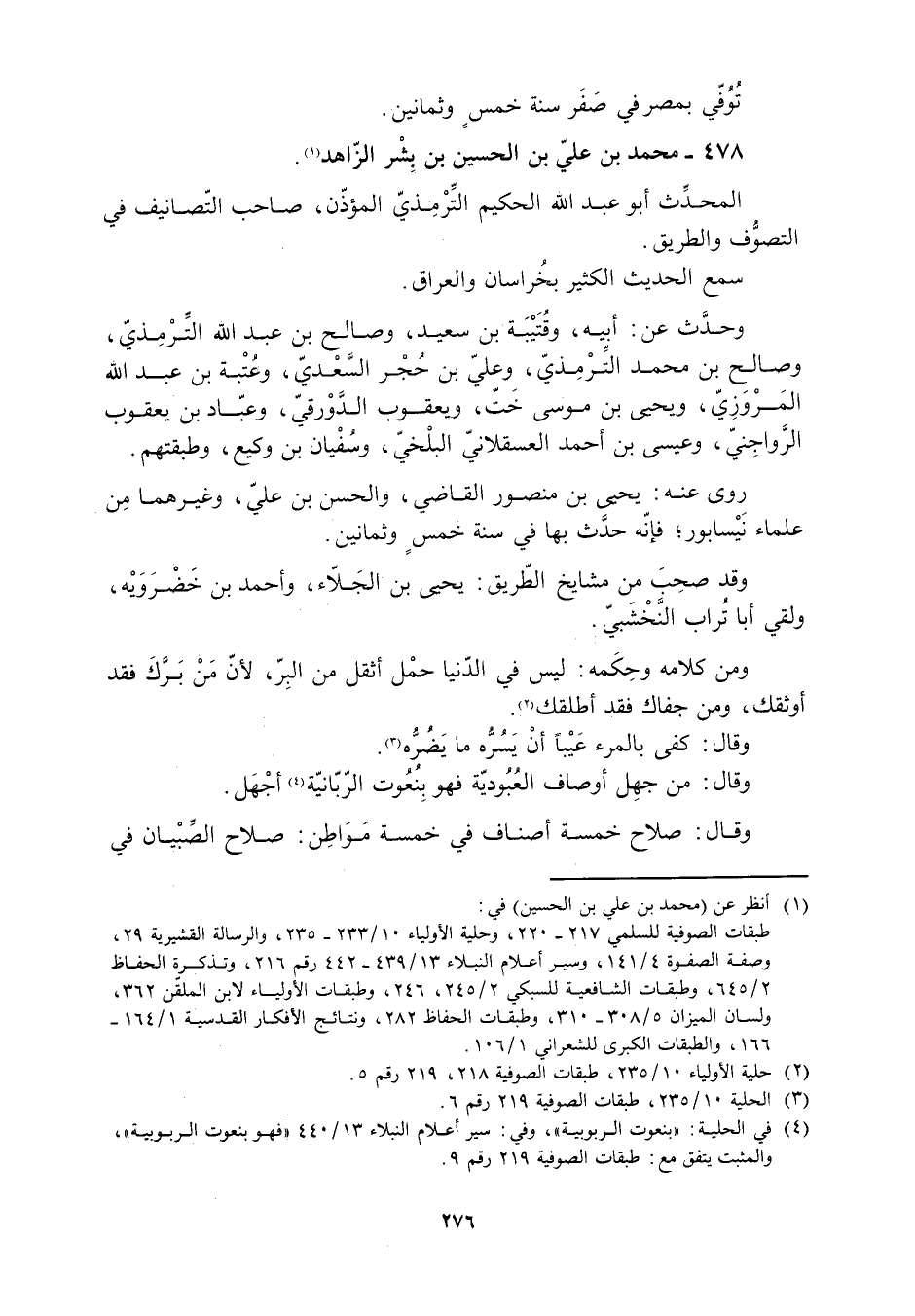 [3] الحلية 10/ 235، طبقات الصوفية 219 رقم 6.