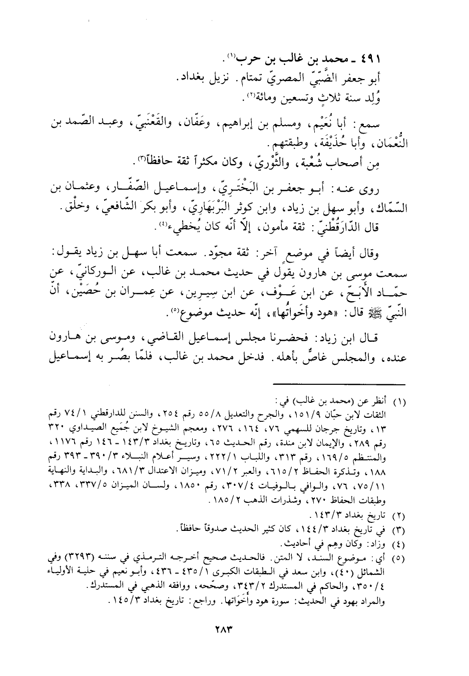 [3] في تاريخ بغداد 3/ 144، كان كثير الحديث صدوقا حافظا.