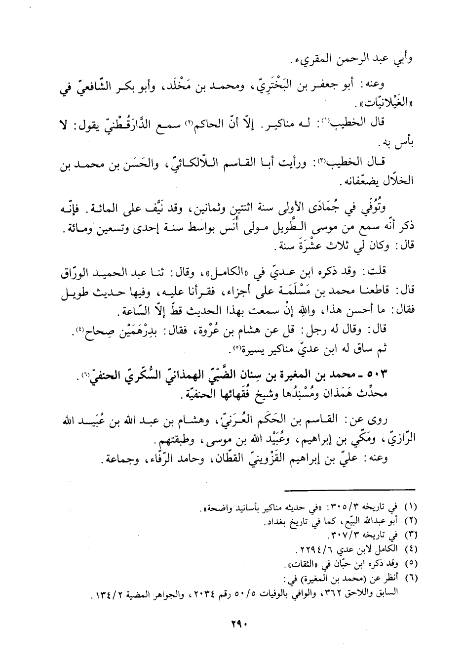 503- محمد بن المغيرة بن سنان الضَّبِّيّ الهمذانيّ السُّكَّري الحنفيّ [6] .