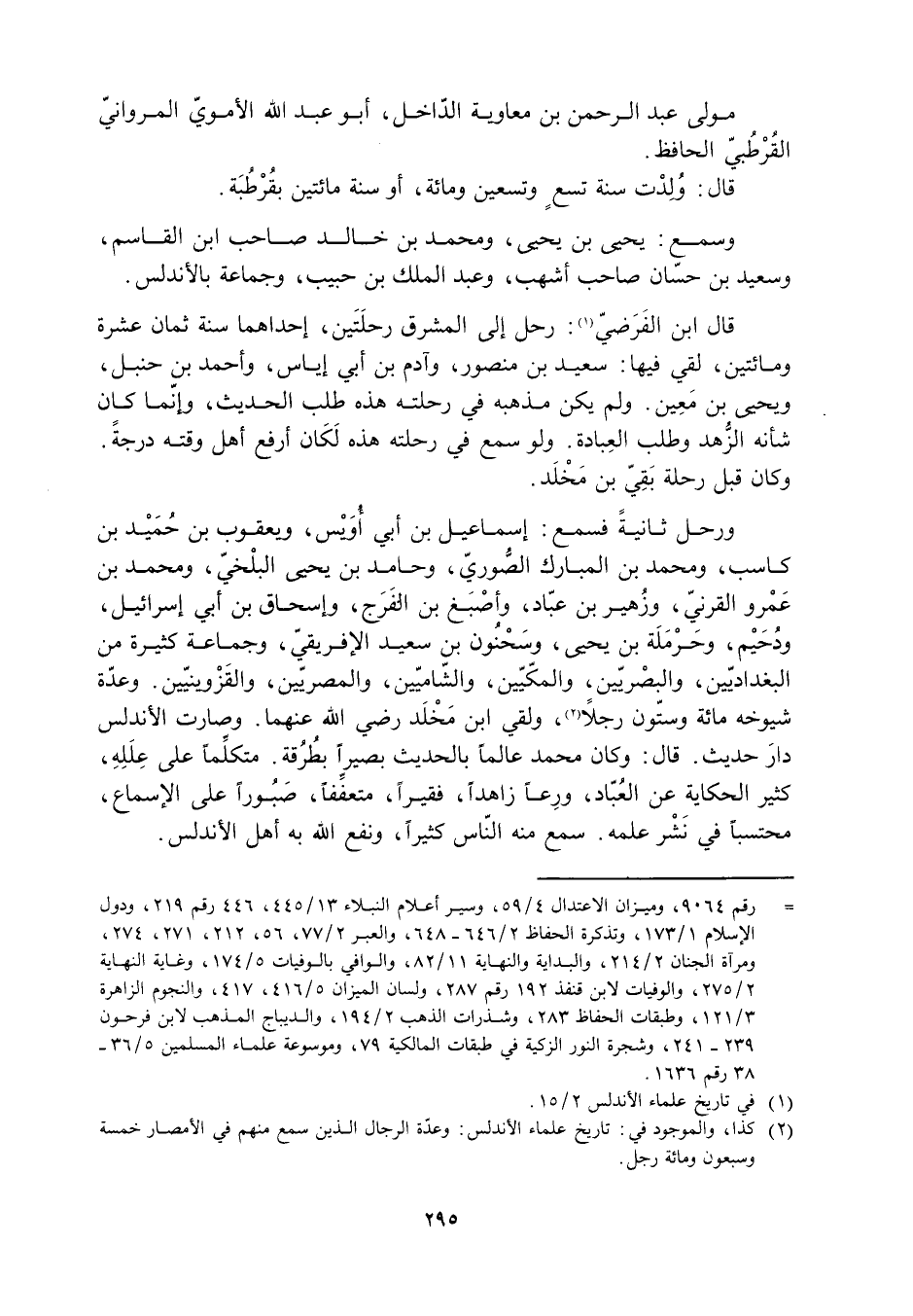 [2] كذا، والموجود في: تاريخ علماء الأندلس: وعدّة الرجال الذين سمع منهم في الأمصار خمسة وسبعون ومائة رجل.
