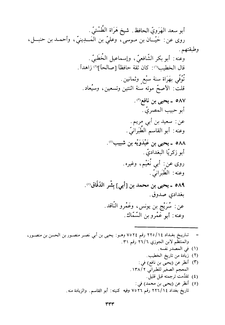 [ () ] تاريخ بغداد 14/ 225 رقم 7524 وهو: يحيى بن أبي نصر منصور بن الحسن بن منصور، والمنتظم لابن الجوزي 6/ 26 رقم 31.