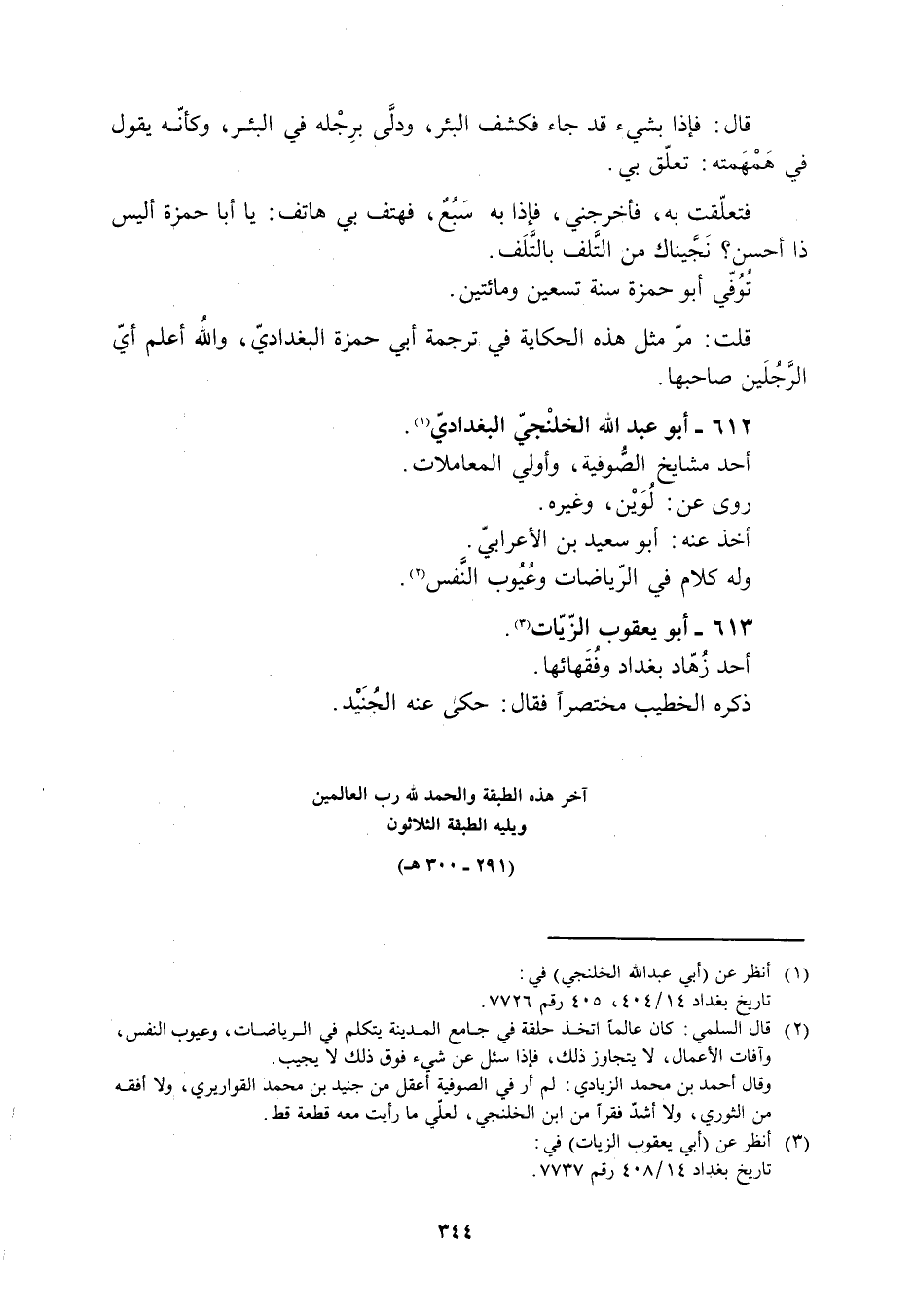 آخر هذه الطبقة والحمد للَّه رب العالمين ويليه الطبقة الثلاثون (291- 300 هـ)