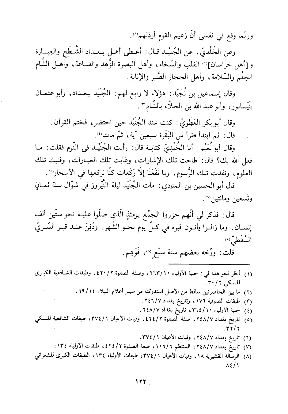 [8] الرسالة القشيرية 18، وفيات الأعيان 1/ 374، طبقات الأولياء 134، الطبقات الكبرى للشعراني 1/ 84.