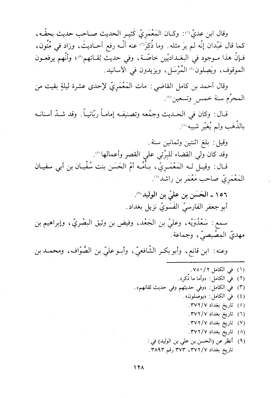 [9] انظر عن (الحسن بن علي بن الوليد) في: