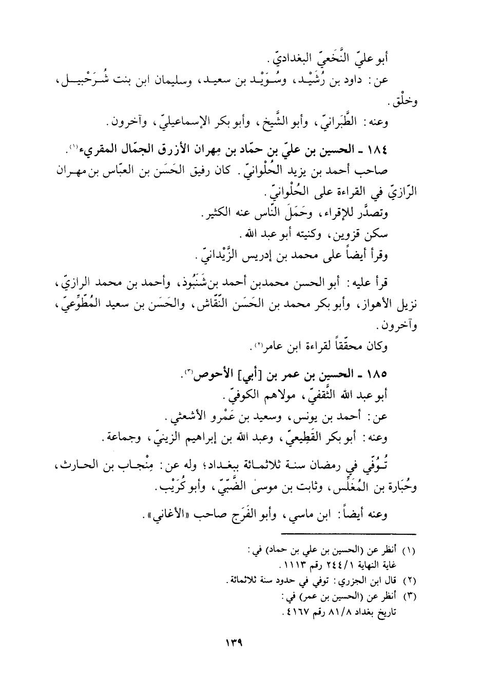 184- الحسين بن عليّ بن حمّاد بن مهران الأزرق الجمّال المقرئ [1] .