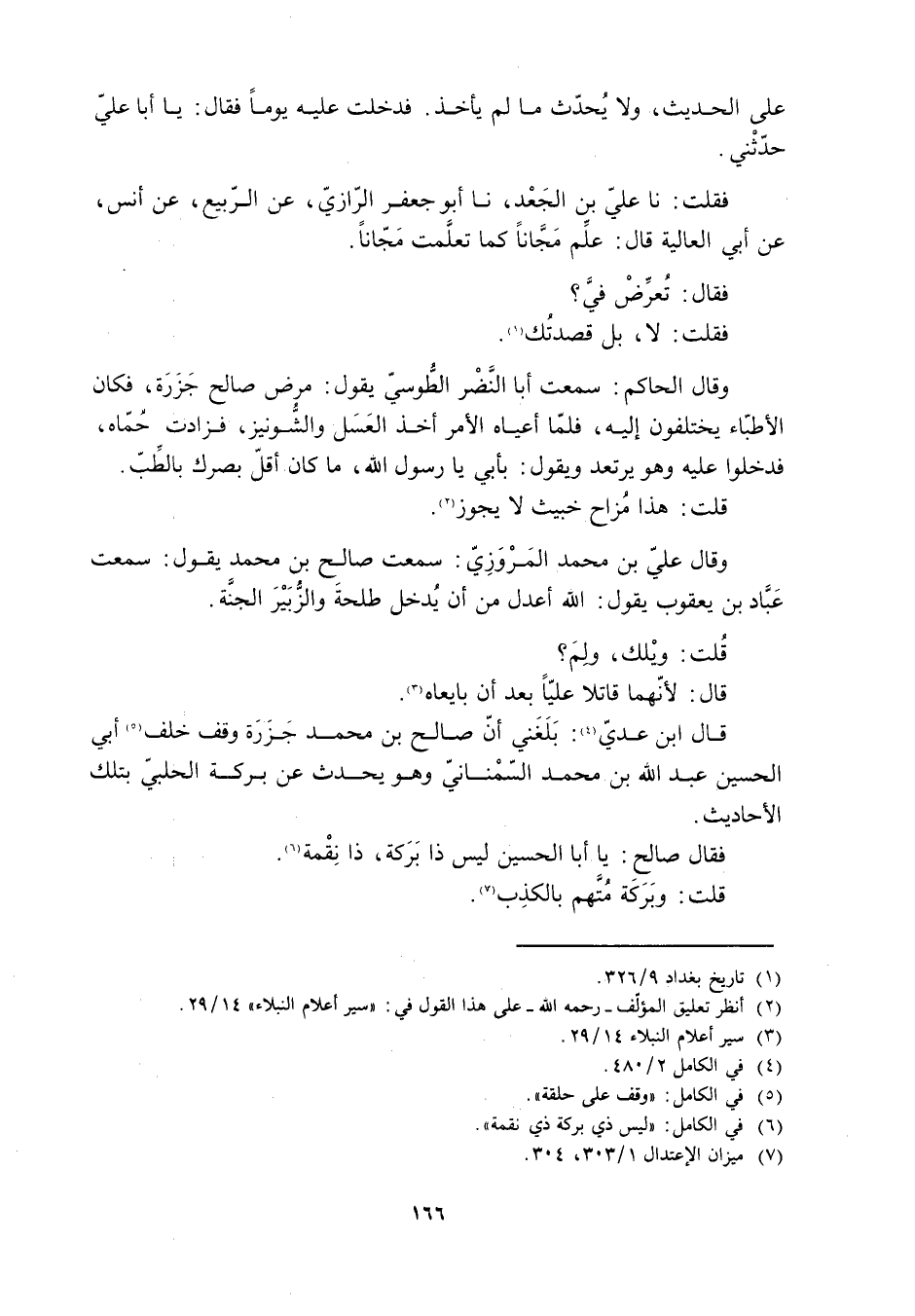 قَالَ ابن عديّ [4] : بَلَغني أنّ صالح بن محمد جَزَرَة وقف خلف [5] أبي الحسين عبد الله بن محمد السّمنانيّ وهو يحدث عن بركة الحلبيّ بتلك الأحاديث.