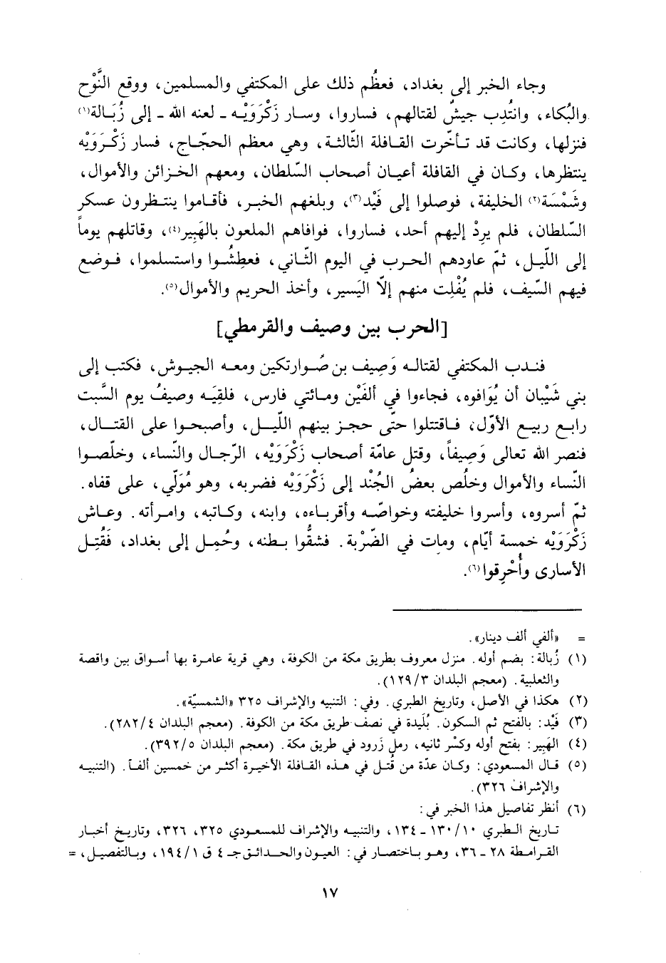 [5] قال المسعودي: وكان عدّة من قتل في هذه القافلة الأخيرة أكثر من خمسين ألفا. (التنبيه والإشراف 326) .