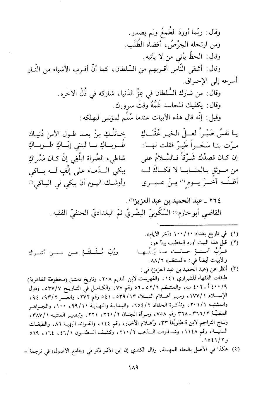 [1] في تاريخ بغداد 10/ 100 «آخر الأيام» .