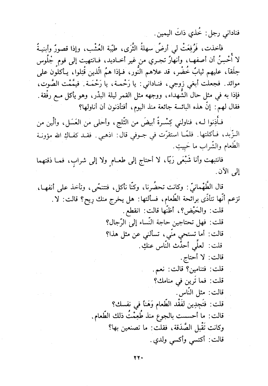 فانتبهت وأنا شَبْعَى رَيًّا، لا أحتاج إلى طعام ولا إلى شرابٍ، فما ذقتهما إلى الآن.