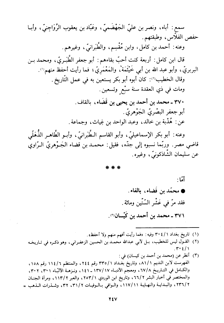370- محمد بن أحمد بن يحيى بن قضاء، بالقاف.