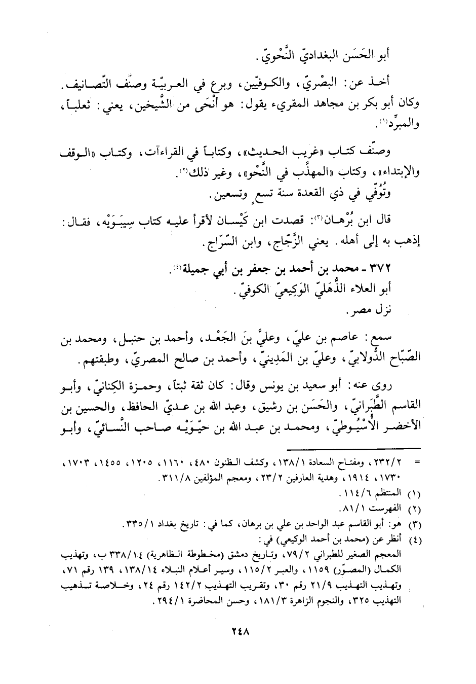 وكان أبو بكر بن مجاهد المقرئ يقول: هو أنحى من الشّيخين، يعني: ثعلبًا، والمبرَّد [1] .