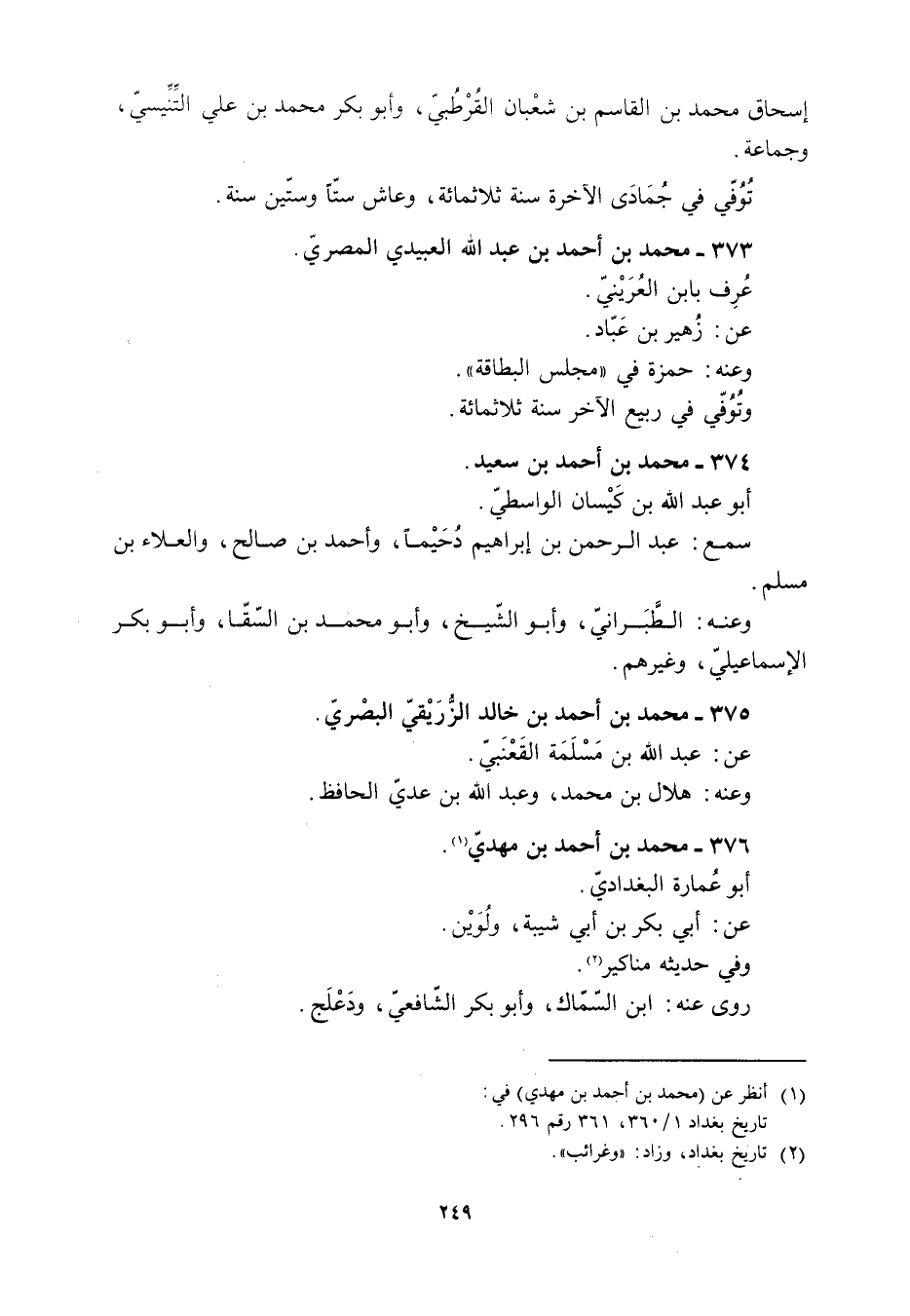 تاريخ بغداد 1/ 360، 361 رقم 296.