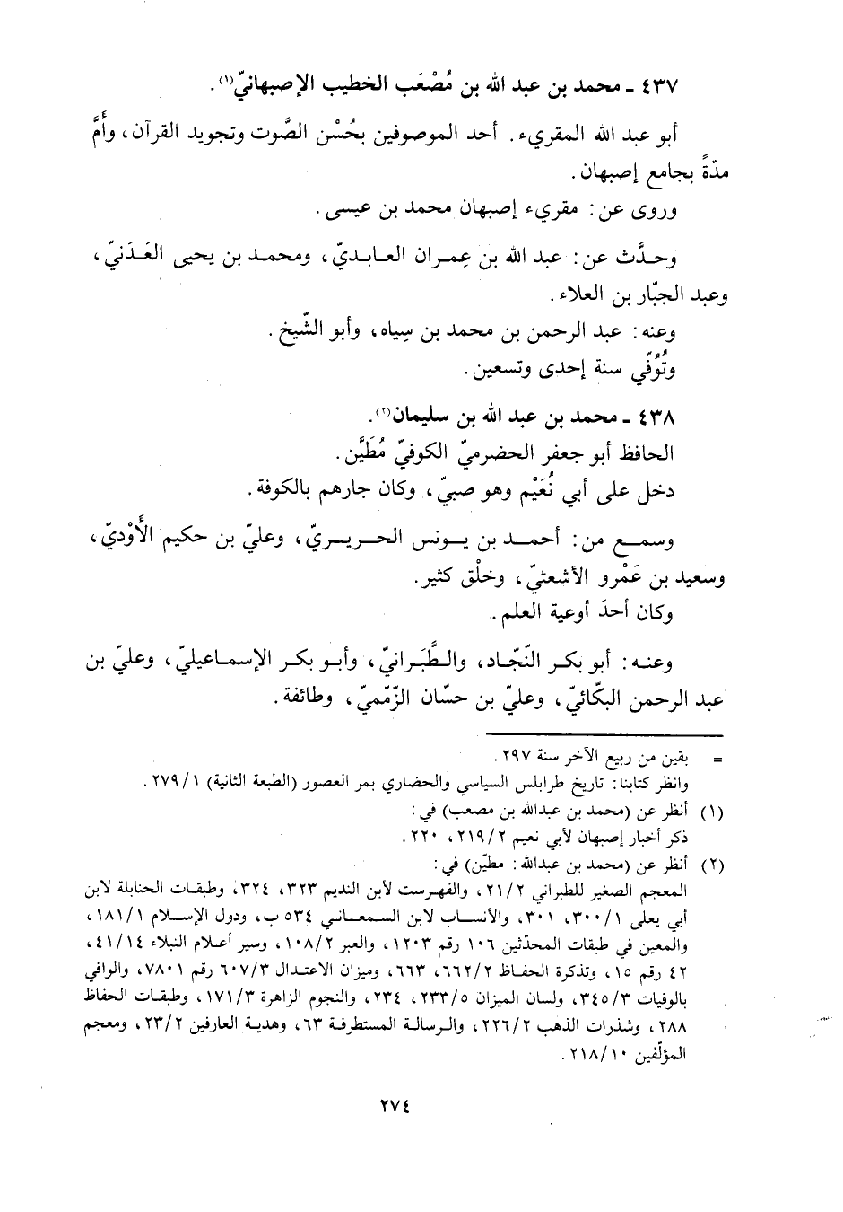 437- محمد بن عبد الله بن مصعب الخطيب الأصبهاني [1] .