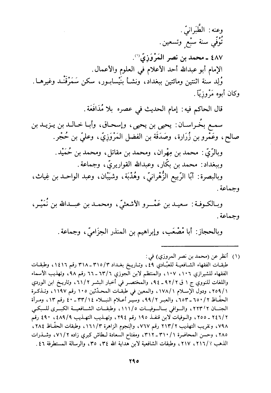 [1] انظر عن (محمد بن نصر المروزي) في: