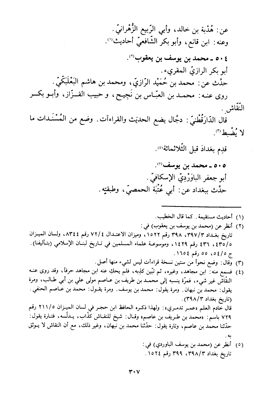 تاريخ بغداد 3/ 398، 399 رقم 1524.