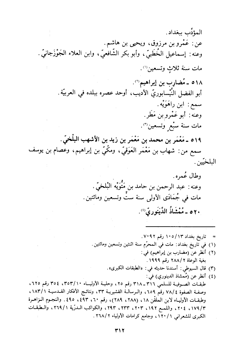 [ () ] تاريخ بغداد 13/ 105 رقم 7092.