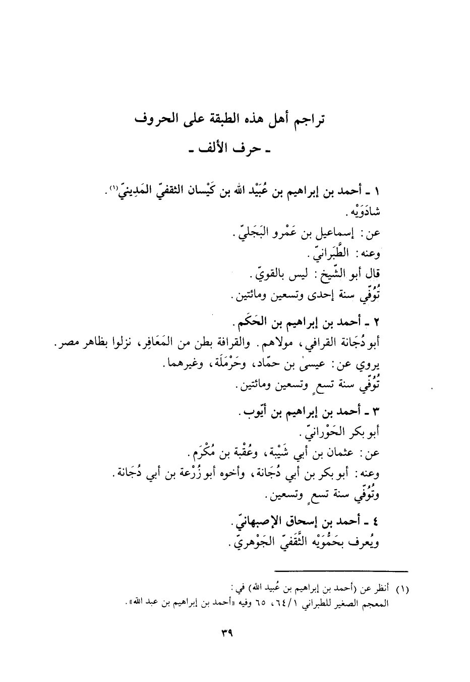 تَرَاجِمُ أَهْلِ هَذِهِ الطَّبَقَةِ عَلَى الْحُرُوفِ