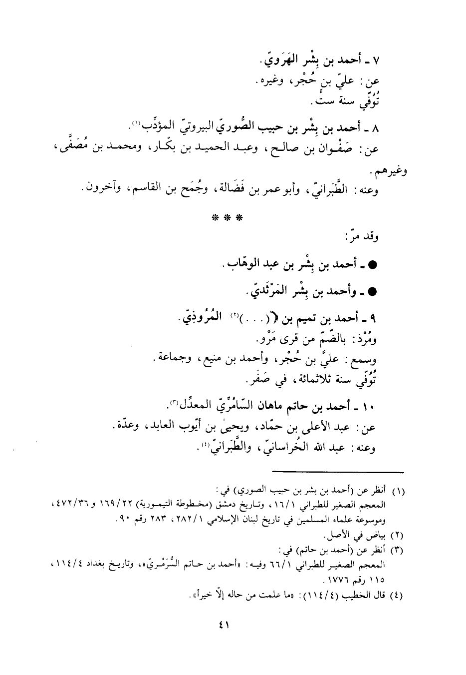 [1] انظر عن (أحمد بن بشر بن حبيب الصوري) في: