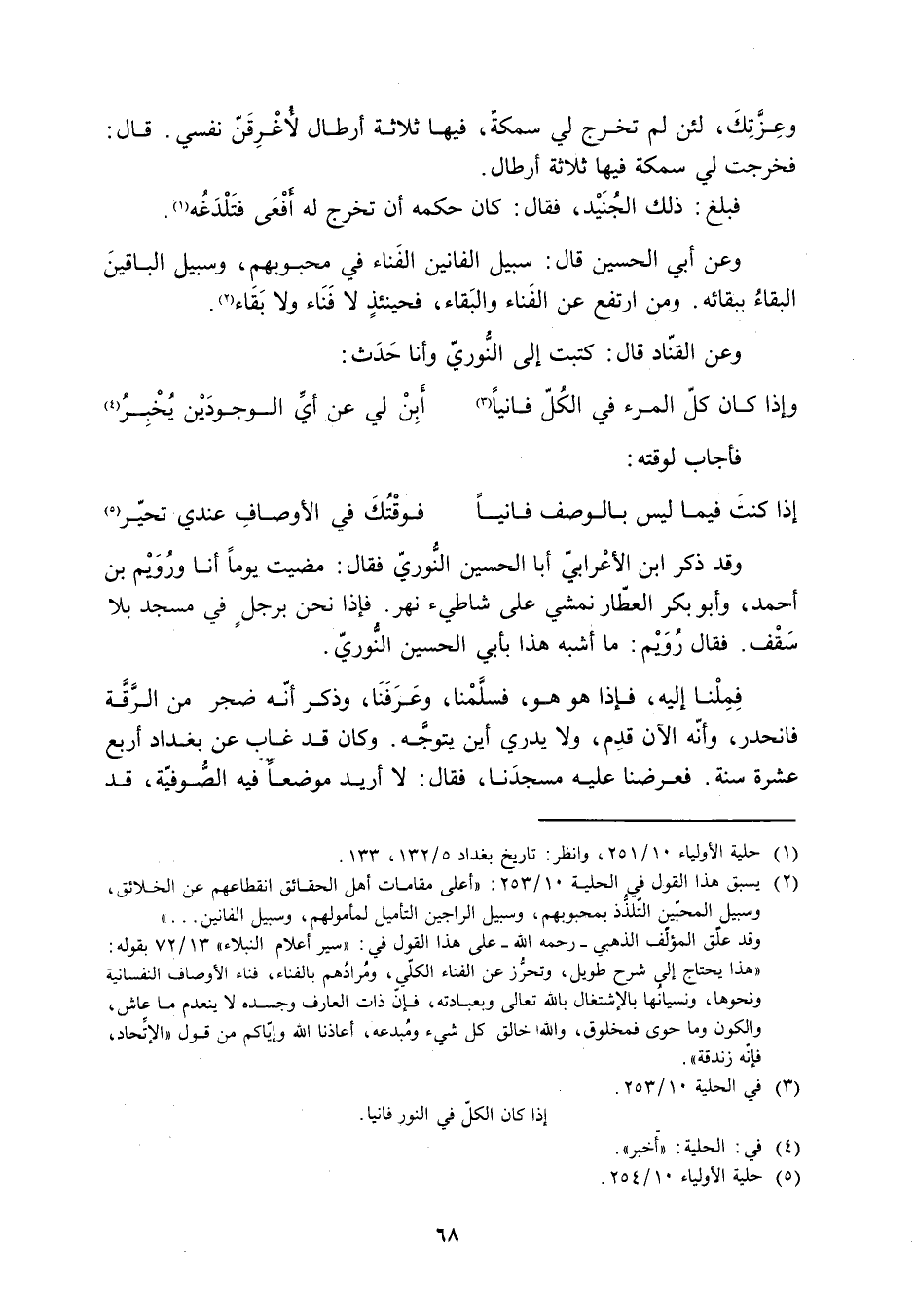 [1] حلية الأولياء 10/ 251، وانظر: تاريخ بغداد 5/ 132، 133.