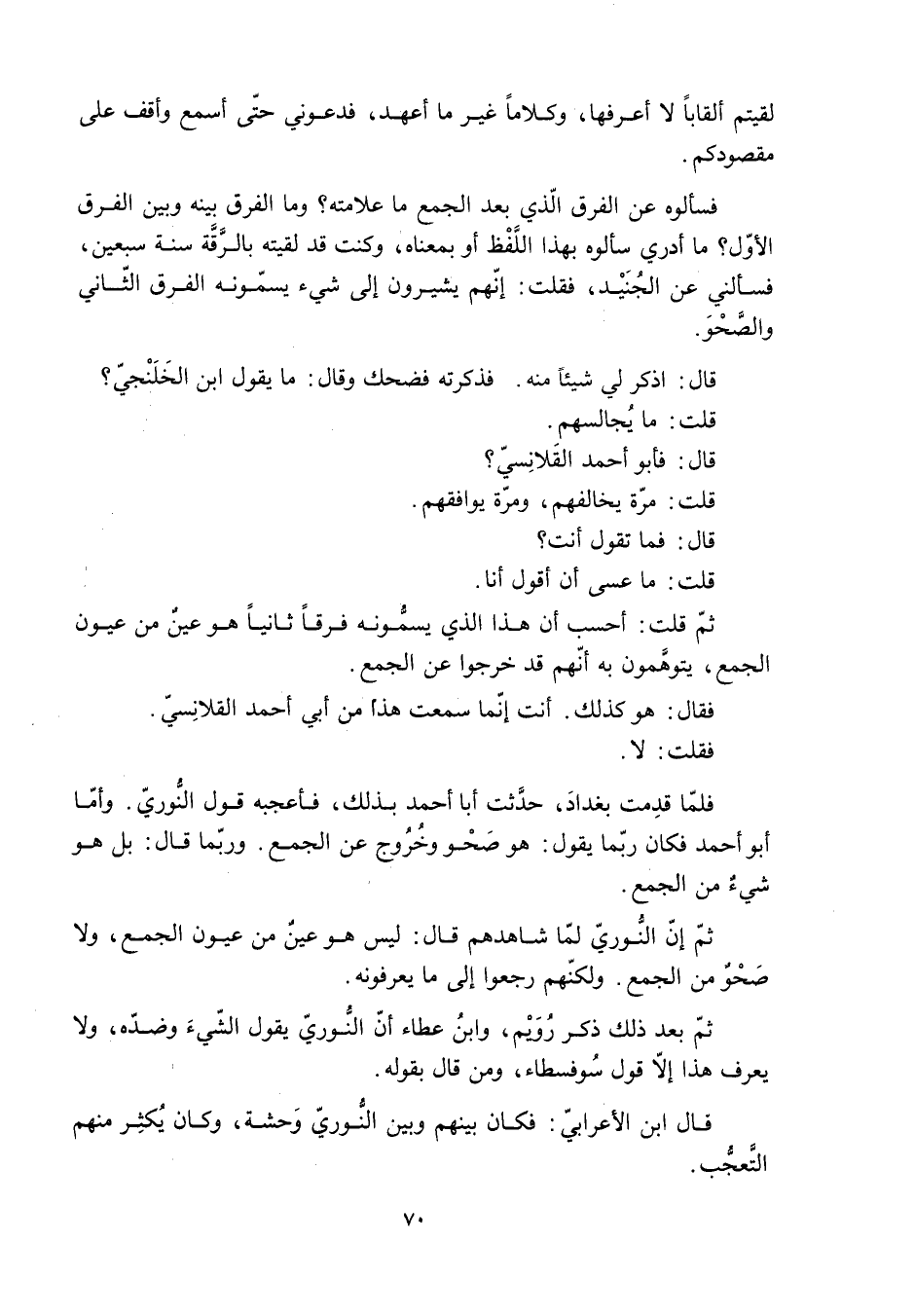 ثمّ قلت: أحسب أن هذا الذي يسمُّونه فرقًا ثانيًا هو عينٌ من عيون الجمع، يتوهَّمون به أنّهم قد خرجوا عن الجمع.