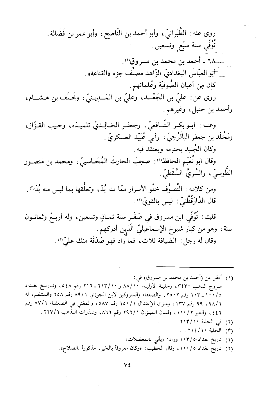 [1] انظر عن (أحمد بن محمد بن مسروق) في: