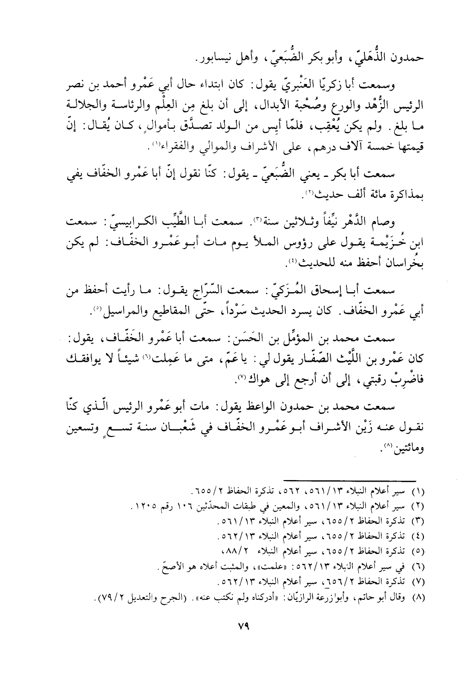 [7] تذكرة الحفاظ 2/ 656، سير أعلام النبلاء 13/ 562.