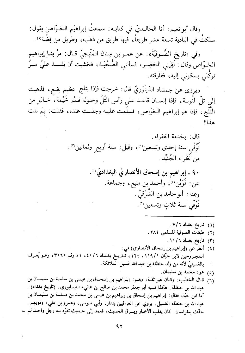 وقال أبو نُعَيْم: أنا الخالدي في كتابه: سمعت إبراهيم الخوّاص يقول: